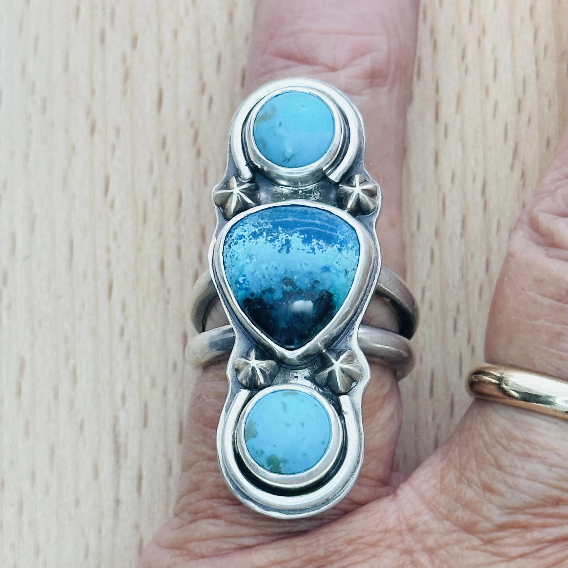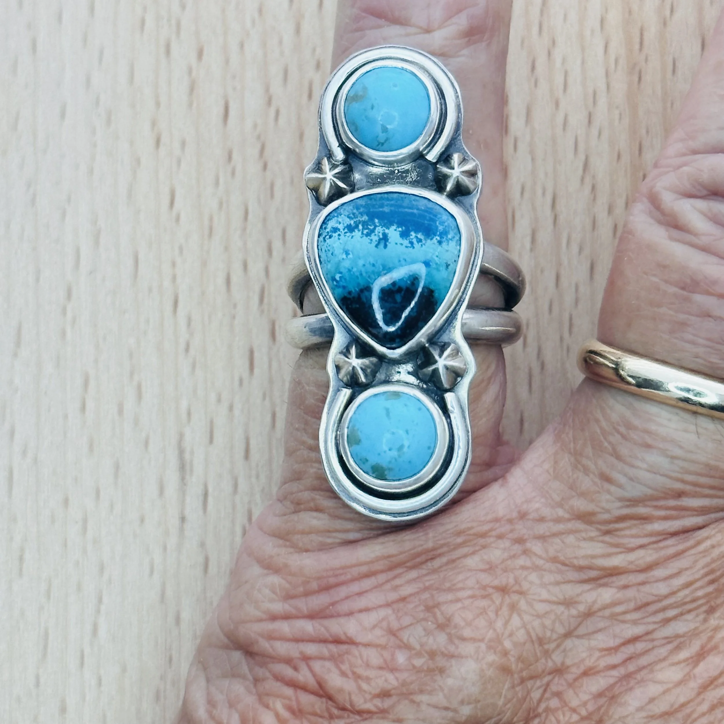 RINGS UNIQUE STONES · CUSTOM DESIGN · TIMELESS Categories: All TURQUOISE SALE All TURQUOISE SALE Green Mojave Turquoise ring $135.00 Purple Mojave and Kingman Turquoise ring size 8 1/2 $220.00 Colorado Turquoise ring $160.00 Kingman Turquoise Ring $190.00 Turquoise and Shattuckite 3 stone ring $215.00
